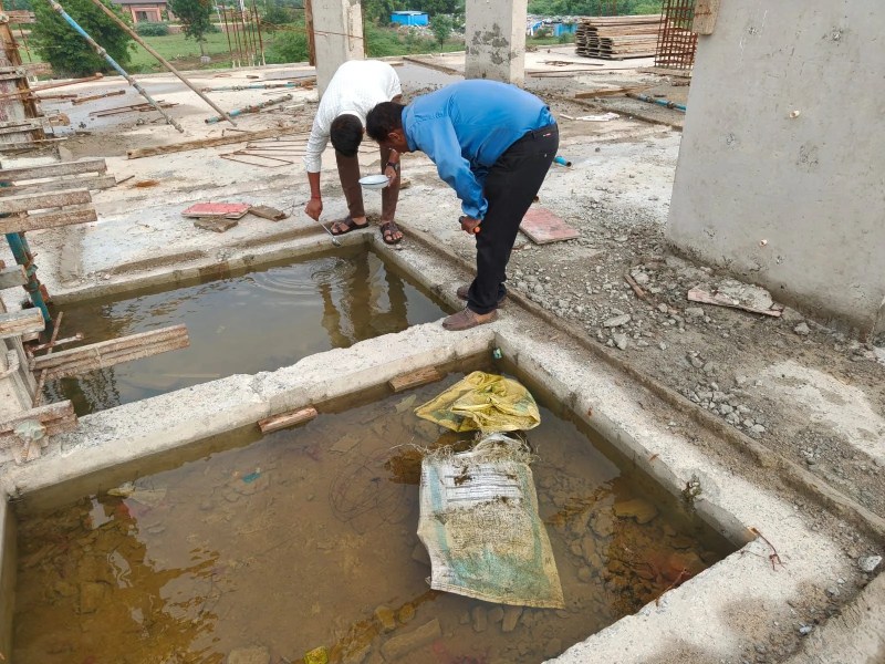 अहमदाबाद में निर्माणाधीन इकाई परिसर में मच्छरों की उत्पत्ती की जांच करते।