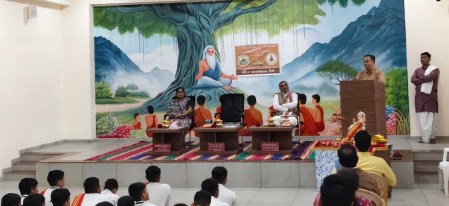 उन्होंने छात्रों को संबोधित करते हुए कहा कि विद्या का स्थान सर्वोच्च है। पाठशाला संस्कृत और संस्कृति का पर्व है। आधुनिक सुविधाओं से युक्त भवन में संस्कृत और सनातन संस्कृति के संरक्षण के लिए नए-नए शैक्षणिक प्रकल्प स्थापित कर व्यक्तित्व निर्माण, सामाजिक कल्याण और राष्ट्र के प्रति समर्पित भावना का विकास करना महाविद्यालय का उद्देश्य है। उन्होंने कहा कि सभी लोगों को अधिक से अधिक संख्या में इस महाविद्यालय से जुड़कर समाज को अच्छे रास्ते की ओर अग्रसर होने के लिए प्रेरित करना चाहिए।