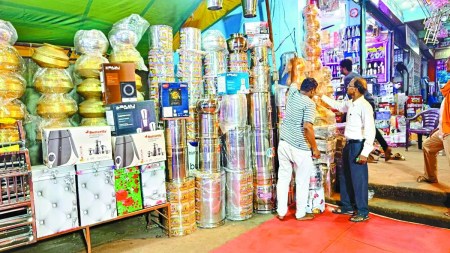 शुक्रवार को आम दिनों की अपेक्षा बाजार में खासी चहल-पहल देखने को मिली। मिट्टी के दीये, ग्वालिन की प्रतिमा, रेडिमेड कपड़ों की ग्राहकी ने जोर पकड़ लिया है। बर्तन, सराफा, इलेक्ट्रॉनिक्स सहित ऑटोमोबाइल का कारोबार चमकने की उम्मीद है। इधर ऑनलाइन शॉपिंग को टक्कर देने दुकानदारों एवं कंपनियों ने ग्राहकों के लिए तरह-तरह की स्कीम लांच की है। निर्धारित खरीदी पर चांदी का सिक्का फ्री, डिस्काउंट, एक्सचेंज ऑफर, कूपन, लक्की ड्रा सहित एक पर एक फ्री जैसे ऑफर भी रखे गए हैं।