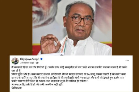 दिग्विजय सिंह ने नक्सली माड़वी हिड़मा के एनकाउंडर को लेकर सवाल उठाए हैं। उन्होंने अपनी पोस्ट में लिखा है कि मैं नक्सली हिंसा का घोर विरोधी हूं। उनके साथ कोई समझौता हो कर उन्हें आत्म समर्पण कराया जाता है मैं उसके पक्ष में हूं। विषय कुछ और है। क्या बस्तर संभाग आदिवासी क्षेत्र में भारत सरकार PESA लागू करना चाहती है या नहीं? क्या बस्तर के खनिज सम्पत्ति में स्थानीय आदिवासी की भागीदारी होगी? क्या SIR की शर्तों को देखते हुए उनके पास पर्याप्त प्रमाण होंगे जिस से उनका नाम मतदाता सूची में शामिल हो सकेगा? भाजपा आदिवासी हितों की कभी समर्थक नहीं रही। इसके साथ ही दिग्विजय सिंह ने एक वीडियो भी सोशल मीडिया पर शेयर किया है जिसमें आदिवासी एक्टिविस्ट सोनी सोढ़ी हिड़मा के एनकाउंटर को फर्जी बता रही हैं।
