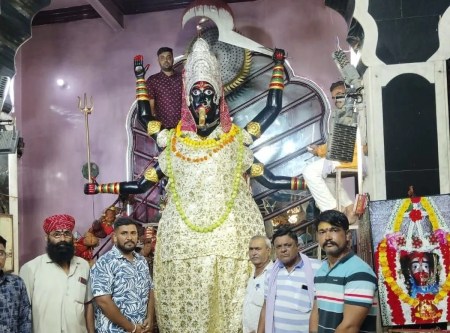 काली माता मंदिर ट्रस्ट के लक्ष्मीनारायण गहलोत बताते हैं कि मां की मूर्ति में चार भुजाएं हैं। हाथों में त्रिशूल, खड़ग और नरमुंड है, जबकि एक हाथ आशीर्वाद की मुद्रा में है। सिर पर मुकुट, पारंपरिक आभूषण और बाहर निकली जिह्वा मां के भव्य स्वरूप को और प्रभावशाली बनाते हैं। मंदिर परिसर में हनुमान, शिव, भैरु, राम-सीता, राधा-कृष्ण समेत नव देवियों की मूर्तियां भी स्थापित हैं।