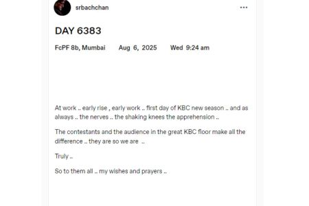 Meanwhile, Amitabh Bachchan also made a blog post, writing: “I am excited about this new journey and also nervous.” Along with this, Big B wrote: “Work begins… waking up early, starting work early… the first day of the new season of KBC… the usual nervousness, trembling knees, and apprehension too.”
