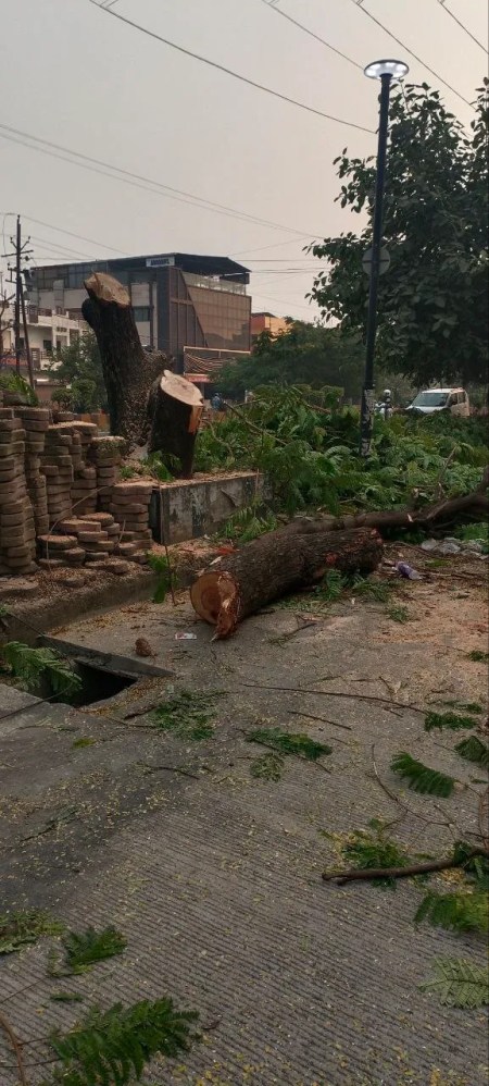 एमआर फोर पर एसबीआई चौक से उखरी की ओर जाने वाले मार्ग पर सालों पुराना गुलमोहर का छायादार पेड़ लगा हुआ था। कटवाने वाले दुकानदार का कहना है कि इसके तने ऊपर से गुजर रही बिजली की लाइन से टकराने लगीं थीं। जिसको लेकर परेशानी हो रही थी। इन्हें छंटवाने के लिए पार्षद से बात की थी, उन्होंने इसकी अनुमति दे दी। लेकिन रविवार को दुकानदार ने छंटाई करवाने के बजाय इसे पूरे तने से ही साफ कर दिया। पूछने पर पहले तो वह जवाब नहीं दे पाया। विरोध करने पर छोटा सा तना छोड़ दिया, इसी बीच गाड़ी में पेड़ की सारी लकडिय़ां लोड कर जल्दबाजी में वहां से पेड़ काटने वालों को चलता भी कर दिया।