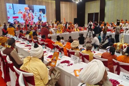 होटल परिसर में सुबह से ही शंख, घंटा-घडियाल, संकीर्तन और जयकारों के बीच देशभर के संत-विभूति एकत्रित हुए। सामान्यत: इस प्रकार की धर्मसभा मठ-मंदिर या गौशालाओं में होती है, परंतु आयोजकों ने कहा कि मामला अत्यंत गंभीर है, इसलिए गंभीरता दर्शाने के लिए संत समाज ने शिष्यों के सहयोग से इस बैठक का आयोजन होटल में किया है।
