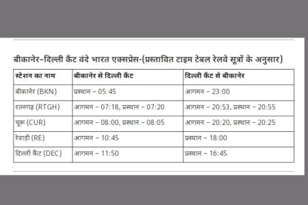 Bikaner Delhi Vande Bharat Train: बीकानेर-दिल्ली कैंट वंदे भारत ट्रेन का आने-जाने का समय
