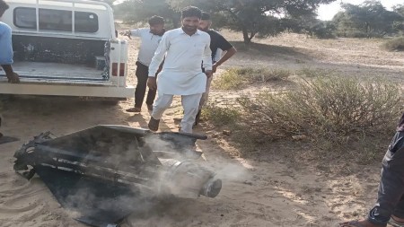 जैसलमेर जिले की पोकरण फील्ड फायरिंग रेंज के पास स्थित भादरिया गांव के पास शनिवार दोपहर बाद एक मिसाइल का टुकड़ा तेज धमाके के साथ गिरा, जिससे ग्रामीणों में हड़कंप मच गया। गौरतलब है कि पोकरण फील्ड फायरिंग रेंज विस्तृत भू-भाग में फैली हुई है।