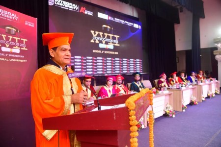 चांसलर प्रो. सैयद वसीम अख्तर ने छात्रों को संबोधित करते हुए कहा कि सच्चाई और ईमानदारी से भरा रास्ता ही स्थायी सफलता की ओर ले जाता है। जीवन में गलत रास्ते पर चलकर भले ही अस्थायी लाभ मिले, पर अंत में वही नुकसानदायक होता है। अपने माता-पिता का सम्मान करें और शिक्षकों का आभार व्यक्त करें ,यही सच्ची सफलता है। प्रो-चांसलर सैयद नदीम अख्तर ने कहा कि दीक्षांत केवल विदाई नहीं, बल्कि एक नई यात्रा की शुरुआत है।दुनिया को केवल डॉक्टर और इंजीनियर नहीं, बल्कि अच्छे इंसानों की ज़रूरत है। सही होने से ज्यादा जरूरी है अच्छा होना। विशिष्ट अतिथि नासिर मुंजी ने विद्यार्थियों को तेजी से बदलती दुनिया के अनुरूप विश्लेषणात्मक सोच विकसित करने की सलाह दी। उन्होंने कहा कि हम सभी को सीखना चाहिए कि अधिक बोलने से बेहतर है अधिक सुनना। जीवन में सफल वही होता है जो दूसरों को समझने की क्षमता रखता है।