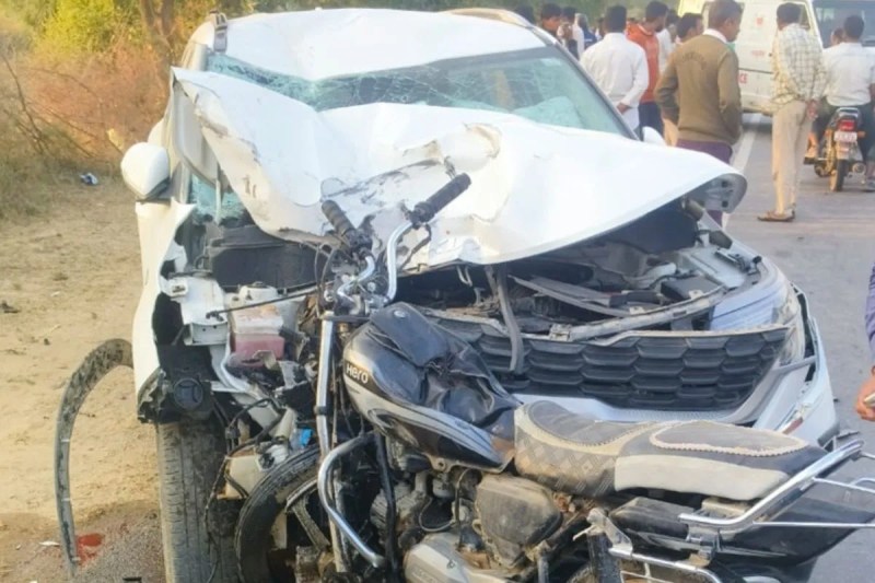 पुलिस के अनुसार दूगौर की ढाणी निवासी श्रवणराम विश्नोई अपनी पत्नी और बेटे के साथ रेण गांव से अपनी ढाणी लौट रहा था। इस दौरान बिचपुड़ी पहुंचने से करीब आधा किमी पहले होटल के पास एक कार ने ओवरटेक करते हुए सामने से आ रही बाइक को टक्कर मार दी। हादसे में कार के बोनट में बाइक फंस गई।