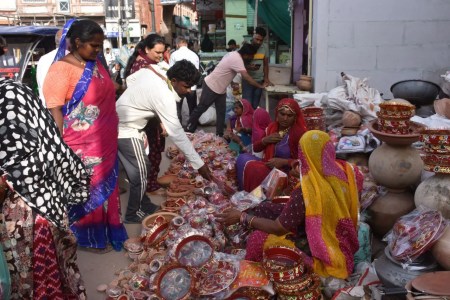 नागौर. सुहागिनों का पर्व करवा चौथ शुक्रवार को मनाया जाएगा। शहर में गुरुवार से ही त्योहार की रौनक दिखने लगी है। बाजारों में पूजन सामग्री, करवों के साथ ही श्रृंगार की दुकानों पर भीड़ बनी रही। महिलाएं दिन भर खुद को संवारने, पूजा की थाल, मेहंदी और चुनरी की खरीदारी में व्यस्त रहीं। शहर के गांधी चौक, सदर बाजार में गुरुवार शाम महिलाओं की खरीदारी से रौनक रही। रंग-बिरंगे करवों के साथ ही पूजन सामग्री खरीदने वालों से बाजार गुलजार रहा। इधर कई कॉलोनियों में भी महिला मंडलों में सामूहिक पूजा की तैयारियां चल रही हैं। महिलाओं ने गीत-संगीत और थाली सज्जा प्रतियोगिताओं का आयोजन किया है। इसके साथ ही शहर की छतों पर चांद देखने की तैयारियां भी पूरी कर ली गई हैं।