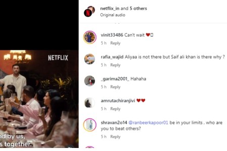 दरअसल, ट्रेलर में रणबीर कपूर की पत्नी और अभिनेत्री आलिया भट्ट कहीं भी नजर नहीं आ रही हैं। इस पर एक यूजर ने कमेंट किया, 'आलिया कहां है?' वहीं, दूसरे यूजर ने लिखा, 'आलिया यहां नहीं हैं, लेकिन सैफ अली खान यहां हैं, ऐसा क्यों?'