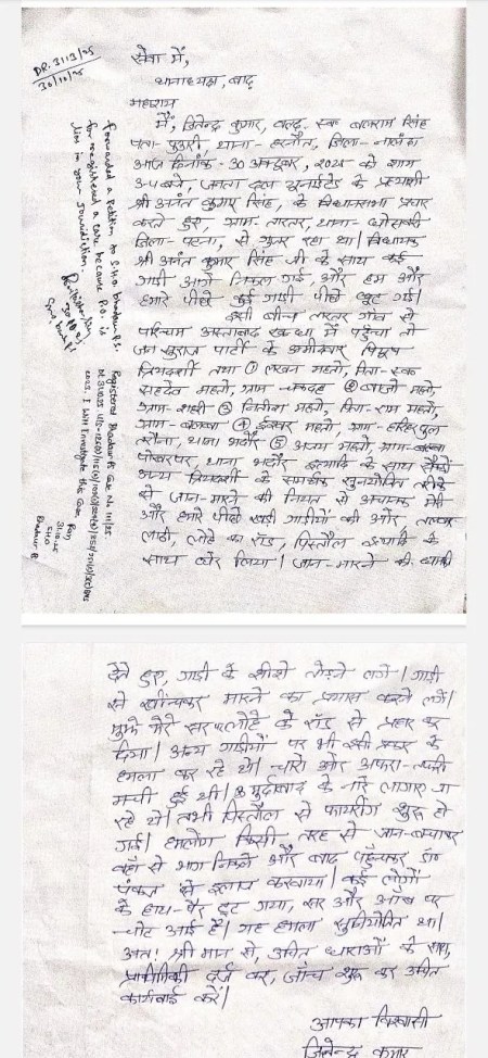 इसी प्रकार से दूसरी FIR अनंत सिंह के समर्थक जीतेन्द्र कुमार के बयान पर दर्ज की गई है। इसमें जनसुराज प्रत्याशी पियूष प्रियदर्शी, लखन महतो, बाजो महतो, नीतीश महतो, ईश्वर महतो, अजय महतो और अन्य अज्ञात व्यक्तियों पर हमला और साजिश रचने का आरोप लगाया गया है। BNS 2023 की धाराएँ 126(2), 115(2), 109(1), 324(9), 352/351(2), 35 लागू की गई हैं।