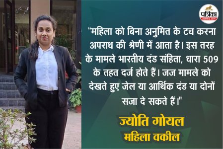 ज्योति गोयल कहती हैं, महिला को बिना अनुमित के टच करना अपराध की श्रेणी में आता है। ये एक प्रकार का यौन हिंसा ही है। इस तरह के मामले अक्सर सामने आते हैं। महिलाओं के साथ कार्यस्थल व बाजार, गाड़ी-बस जैसे सार्वजनिक स्थल पर इस तरह के यौन क्राइम को झेलना पड़ता है। इस तरह के अपराध के लिए जेल भी हो सकता है।