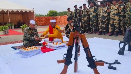ये हथियार हमारे लिए भगवान का आशीर्वाद हैं। हमारे देश में शस्त्र पूजन की परम्परा रामायण और महाभारत काल से चली आ रही है। इस मौके पर छोटे हथियारों से लेकर तोपों तक हर अस्त्र को गंगाजल से शुद्ध किया गया और तिलक लगाकर पूजा की गई। यह आयोजन धार्मिक अनुष्ठान भर नहीं है, बल्कि दुश्मन का सामना करने के लिए सीमा प्रहरियों की तैयारी का संदेश भी है।