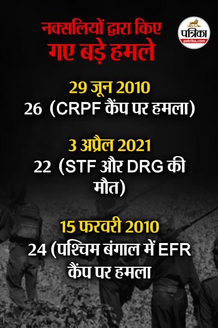 वहीं, सुरक्षाबलों ने इस साल कई टॉप नक्सली नेताओं को मार गिराया है। इनमें गौतम उर्फ सुधाकर (केंद्रीय समिति के सदस्य), भास्कर राव उर्फ मेलारापु एडेल्लू (तेलंगाना राज्य समिति के सदस्य), कट्टा रामचंद्र रेड्डी (केंद्रीय समिति के सदस्य), कडरी सत्यनारायण रेड्डी (केंद्रीय समिति के सदस्य) और मोडेम बालकृष्ण (केंद्रीय समिति के सदस्य) शामिल हैं।