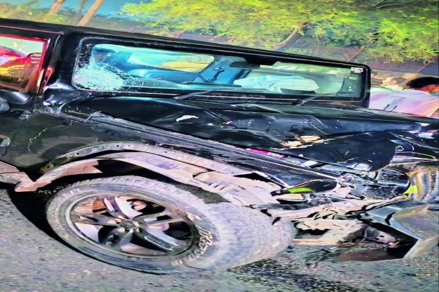 इस थार गाड़ी ने मारी टक्कर।