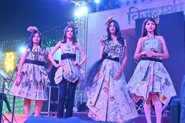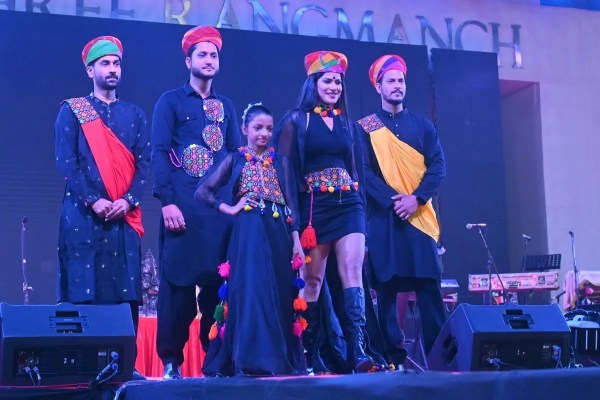 मेला दशहरा के विजय श्री रंगमंच पर आयोजित परिधान उत्सव में खादी व कोटा डोरिया के वस्त्रों का रैम्प पर प्रदर्शन करती मॉडल्स।