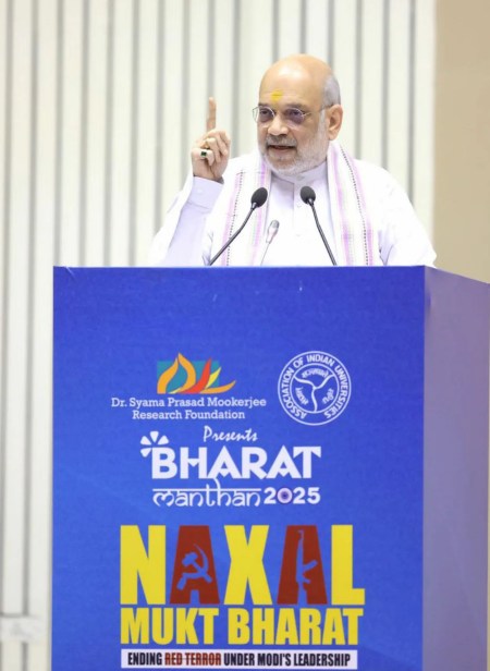 यहां विज्ञान भवन में नकल मुक्त भारत पर मंथन को संबोधित करते हुए शाह ने 31 मार्च 2026 तक देश से वामपंथी उग्रवाद को हमेशा के लिए खत्म करने के संकल्प को दोहराया। उन्होंने कहा कि जिनके हाथ में हथियार हैं, उन्हें आदिवासियों की चिंता नहीं है, बल्कि दुनियाभर से रिजेक्ट हो चुके वामपंथी विचार को जिंदा रखने की चिंता है। शाह ने यह भी कहा कि जब तक भारतीय समाज नक्सलवाद का वैचारिक पोषण, कानून समर्थन और वित्तीय पोषण करने वाले लोगों को समझ नही लेता तब तक नक्सलवाद के खिलाफ लड़ाई समाप्त नहीं होगी।