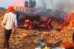 खेत में थ्रेसिंग के दौरान भड़की आग, ट्रैक्टर-थ्रेसर और फसल जलकर खाक